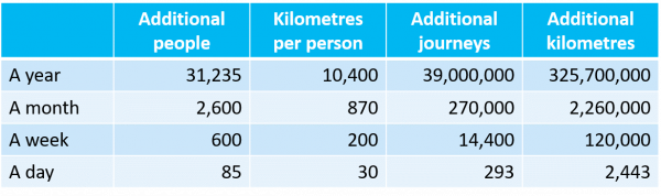 Combining the Census data on Auckland population growth and Household Travel Survey data on Auckland travel per person, reveals total population growth related travel growth a year by all modes between 2013 and 2018.