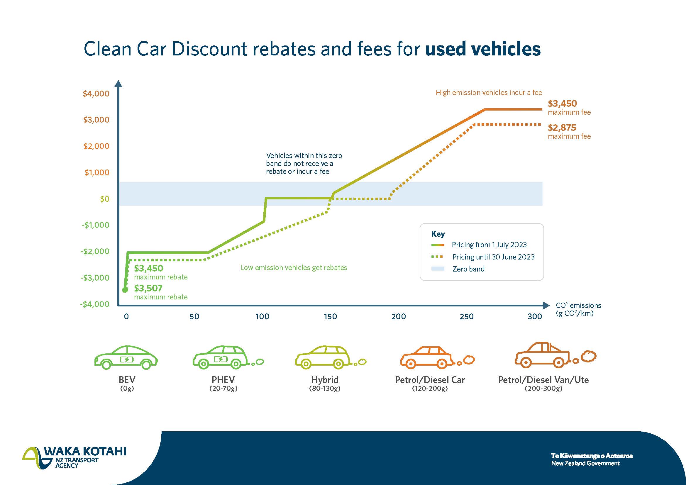 Due to the increased popularity of zero and low emission vehicles purchases, Clean Car Discount rebates and charges will change for vehicles registered from 1 July 2023.